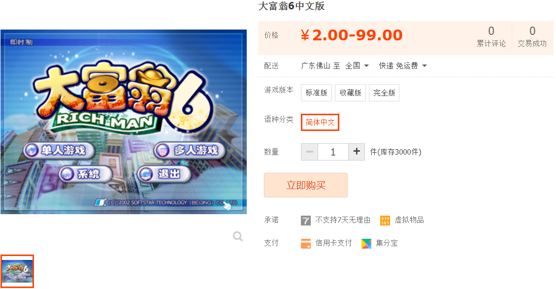 admin PZL休闲益智 大宇资讯 第308期 2020-10-21 大富翁6中文版 游戏下载: 暂无优惠 永久钻石免费当前隐藏内容需要支付2积分已有227人支付 支付查看 1:游戏是通过在线网盘发货 或者QQ邮箱发货 节省邮费和邮递时间 2:店主不在也可以拍下 留下QQ邮箱 一天内发货 3:游戏是压缩包 解压直接可玩 免安装 如有任何问题 请联系店主 提供售后 不要私自默认收货 大富翁 大富翁6 80dyx是一个优秀的游戏付费下载中心,极致后台体验,无插件,集成会员系统老游戏|单机dos游戏|模拟器游戏|小游戏合集|模拟游戏合集|80后单机游戏商城云 » 大富翁6中文版