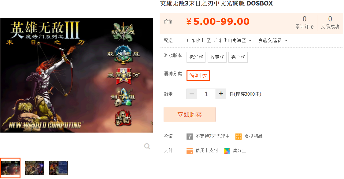 老游戏|单机dos游戏|模拟器游戏|小游戏合集|模拟游戏合集|80后单机游戏商城云 » 英雄无敌3末日之刃中文光碟版 DOSBOX